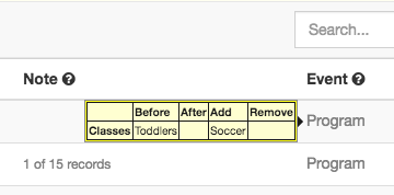 When you look a future event in the History it shows you how the change will be applied. If you do not see anything in the “Add/Remove” columns, it means that the program change has been computed, it appears in the After column and this is what will be applied. Conversely, if you see something in the Add/Remove columns, the system remembers the changes and will apply them on the future date.