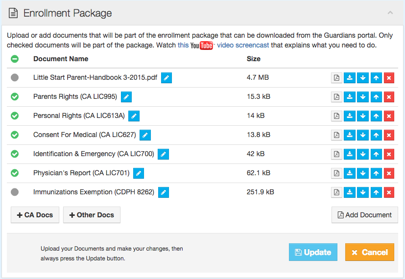 Tired of dealing with stacks of paper? With NeatSchool you can create an online enrollment package that parents or students can download. The package can contain your own documents and state licensing forms. We just uploaded a new screencast that shows all the details of how to prepare your enrollment package. You can find this and all the other screencasts in the Help section of the portal.